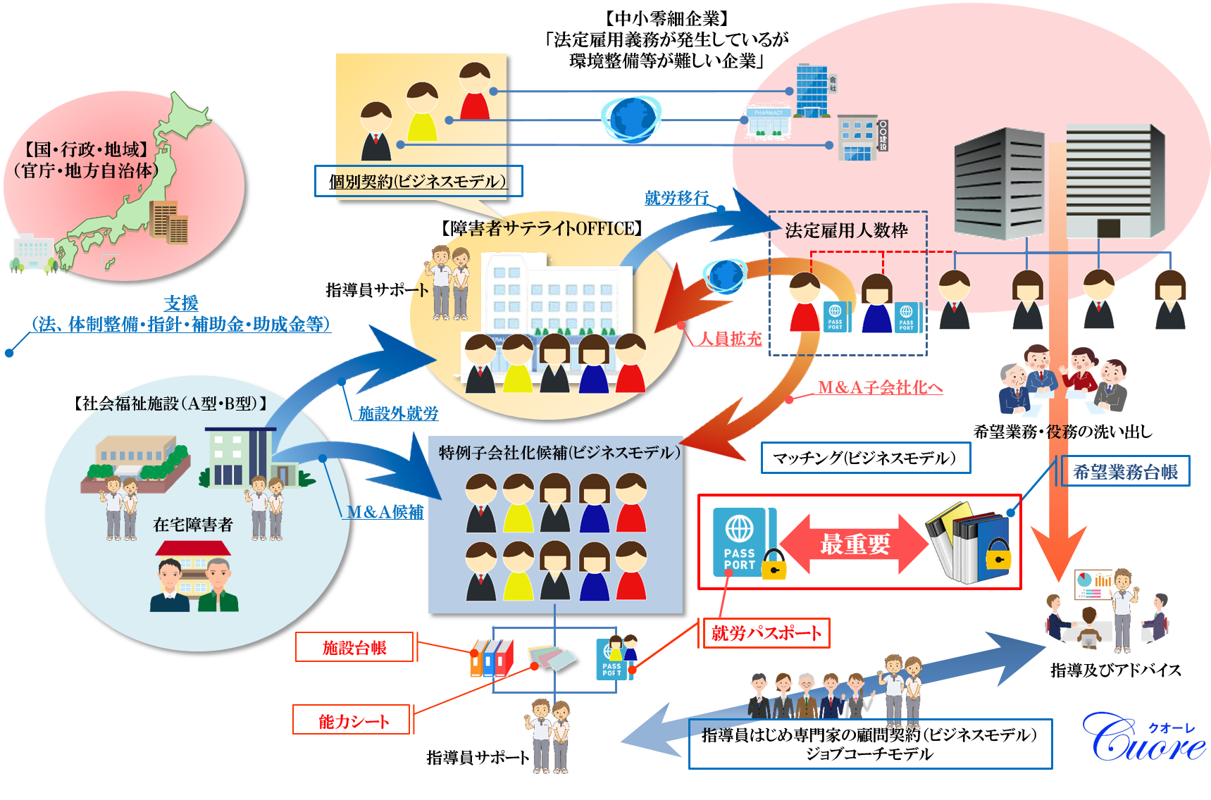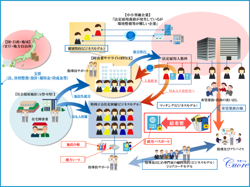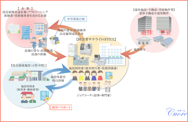 | ※自己・施設利用者分析(適正業務・定着支援サイクル)と台帳化(就労パスポート化) |